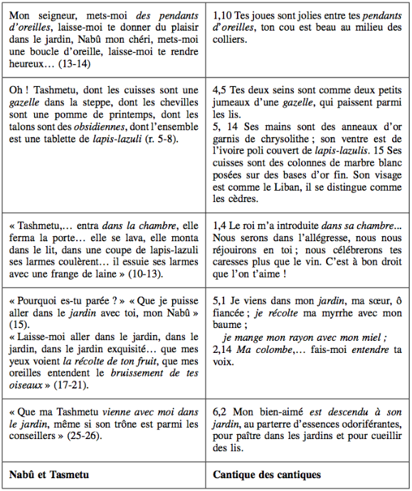 Several poems describe Ishtar's love for Tammuz. Despite the many texts that depict the love affair between Ishtar and Tammuz, there is one text in which Tammuz becomes the victim of his beloved. This is the epic that moderns have called Ishtar's Descent into Hell (the work exists in two versions, one from Ashur, which is older, and the other from Nineveh (from the library of Ashurbanipal). This myth has a Sumerian model. Ishtar is imprisoned in the underworld, and sexuality and fertility come to a halt on earth. Ea solves the problem: he creates a being called "assinnu", "transvestite" (?) in the Ninivite version [1], named Aṣu-shu-namir (Aṣa-namir), meaning "brilliant is his appearance" (expressing his beauty?). This is an allusion to the cultic personnel serving Ishtar. He is sent to the underworld, where he succeeds in resurrecting Ishtar by getting his hands on the water of life. Ereshkigal then curses Aṣu-shu-namir and condemns him to a hard life. Thanks to the intervention of the assinnu, Ishtar rises from the underworld, passing through the seven gates again. But, apparently, Ishtar must leave someone in her place in the underworld. And the person who must replace her is her lover Tammuz, who, it seems, can also ascend, as suggested by the somewhat mysterious ending, which seems to allude to a feast:
