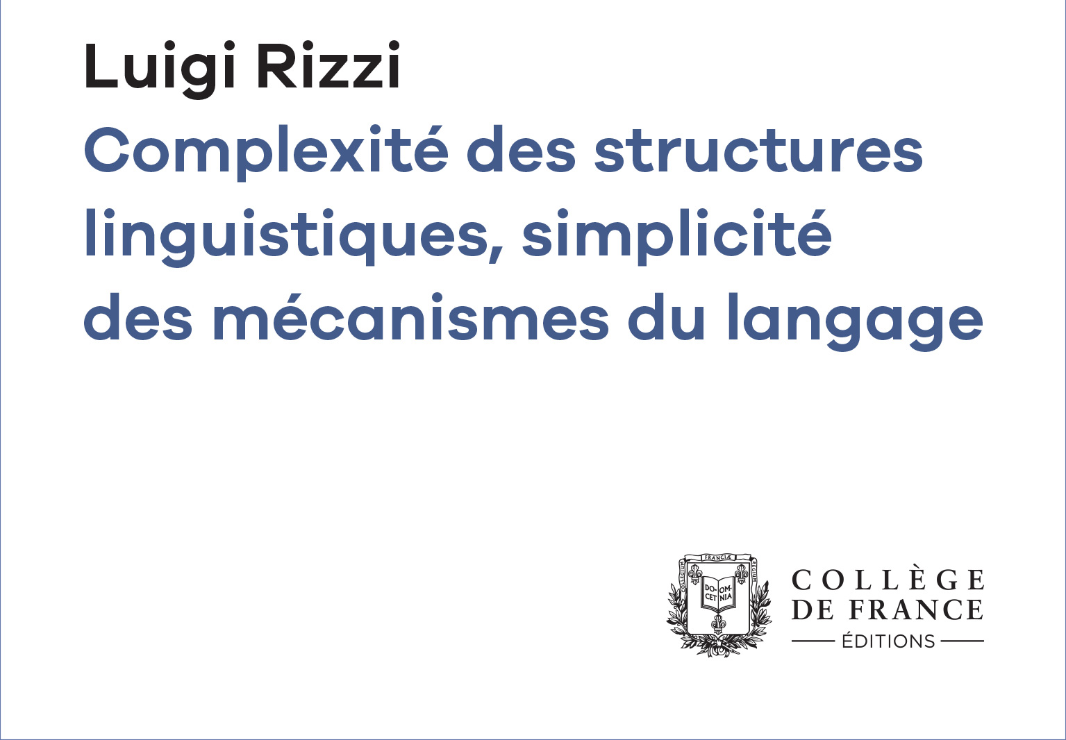 Rizzi L., Complexité des structures linguistiques, simplicité des mécanismes du langage, Paris, Collège de France/Fayard, coll. " Leçons inaugurales ",no 297, [2021] 2022.