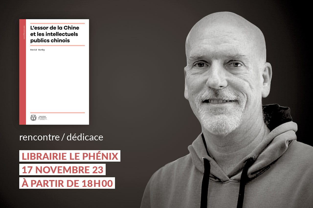 On the occasion of the publication of the book L'Essor de la Chine et les intellectuels publics chinois, Le Phénix bookshop invites David Ownby to a meeting on November 17 2023 at 6 pm (72 boulevard de Sébastopol, 75003 Paris). The discussion between the author and the bookseller will be followed by an exchange with the public and a signing session.