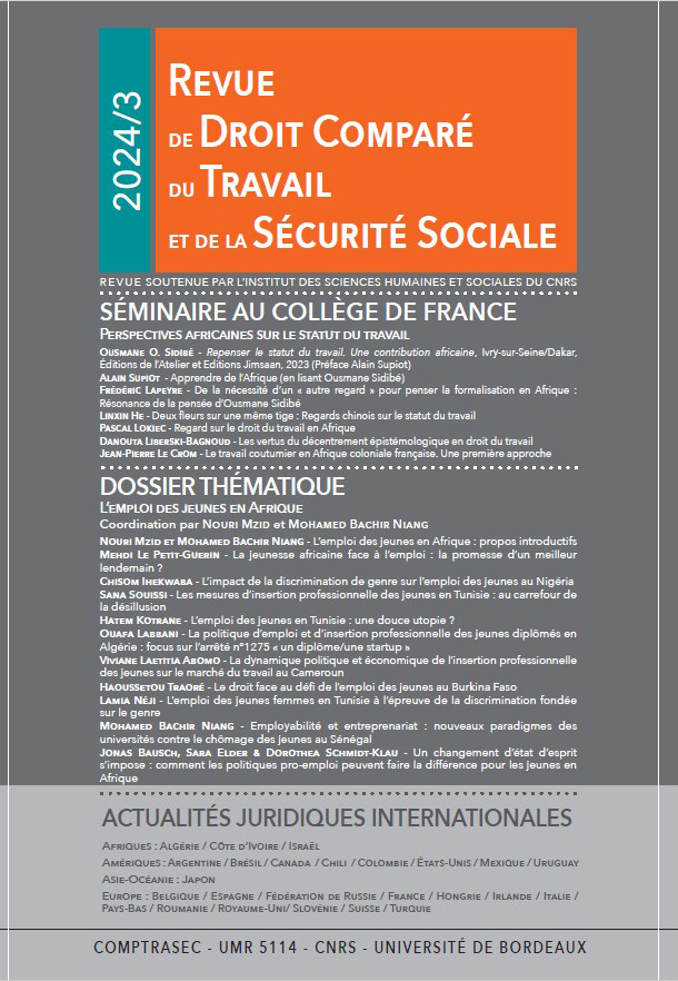 " Learning from Africa (by reading Ousmane Sidibé) ", in Proceedings of the Conference " African Perspectives on the Status of Labor " (Collège de France - October 18, 2023), issue 3/2024 of the Revue de droit comparé du travail et de la Sécurité sociale.