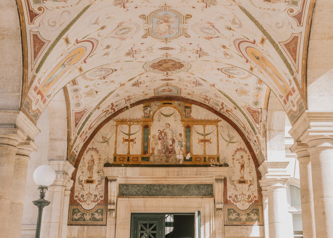 The restoration of the painted decorations on the portico in the Cour Letarouilly has been made possible thanks to the patronage of the Fondation Clément Fayat and the Jeunes Talents & Patrimoine fund of Crédit agricole d'Île-de-France.