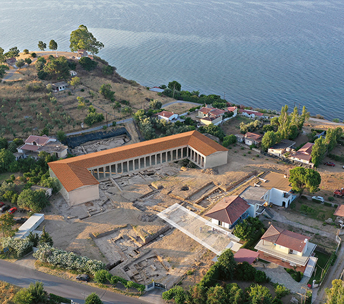 Mais l’aventure ne s’est pas arrêtée là, puisque, dès l’été 2019, deux découvertes majeures ont encore été faites. D’une part, en effet, le démontage des escaliers du puits (en vue de la restauration de ce dispositif) a conduit à l’extraction d’un nouveau lot de documents inscrits, dont un décret de la cité qui, au témoignage même de l’inscription, devait être exposé dans le hiéron (« lieu sacré ») d’Artémis à Amarynthos, en Amarunthoi : ainsi étaient levés les derniers doutes possibles sur l’identification. D’autre part et surtout, l’extension de la fouille en direction de l’ouest faisait apparaître – au-delà d’une fondation ayant toutes chances d’être celle d’un autel monumental (bômos) – la façade ruinée d’un assez imposant édifice, qui devait s’avérer être le temple (naos) de la déesse. L’hypothèse s’est en effet confirmée lors des deux campagnes de 2020 et de 2021 (réalisées en dépit des difficultés liées aux mesures contre la pandémie), avec la mise au jour, dans les fondations mêmes du temple, d’un extraordinaire dépôt contenant plus de 500 objets précieux : vases à décor figuré provenant des ateliers d’Athènes ou d’ateliers locaux à la fin du VIe siècle av. J.-C., très nombreuses figurines de terre cuite montrant la déesse le plus souvent assise, bijoux d’or et pierres précieuses, sans oublier quelques armes offertes à Artémis, dont un grand bouclier de bronze remarquablement conservé. C’est à une doctorante de l’Université de Genève, Tamara Saggini – épaulée par deux vétérans de l’archéologie érétrienne, Thierry Theurillat et Samuel Verdan –, qu’a été confiée la mission d’effectuer cette opération très délicate, à laquelle le professeur a eu le privilège d’assister en direct. Sur la base d’un communiqué diffusé par le ministère grec de la Culture, plusieurs quotidiens – grecs et suisses notamment – ont déjà fait connaître la découverte de ce trésor.