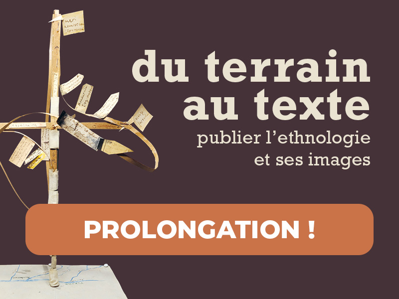 L’exposition Du terrain au texte. Publier l’ethnologie et ses images invite à découvrir deux collections publiées par le Laboratoire d’anthropologie sociale (LAS) du Collège de France : les Cahiers d’anthropologie sociale (éditions de L’Herne) et la collection Ethnologiques (éditions Mimésis), toutes deux dirigées par Philippe Descola. Les deux commissaires, Monique Jeudy-Ballini et Salvatore D’Onofrio, ethnologues et membres du LAS, proposent une traversée au cœur des travaux de leurs collègues à partir d’une sélection d’images, d’objets et de témoignages.