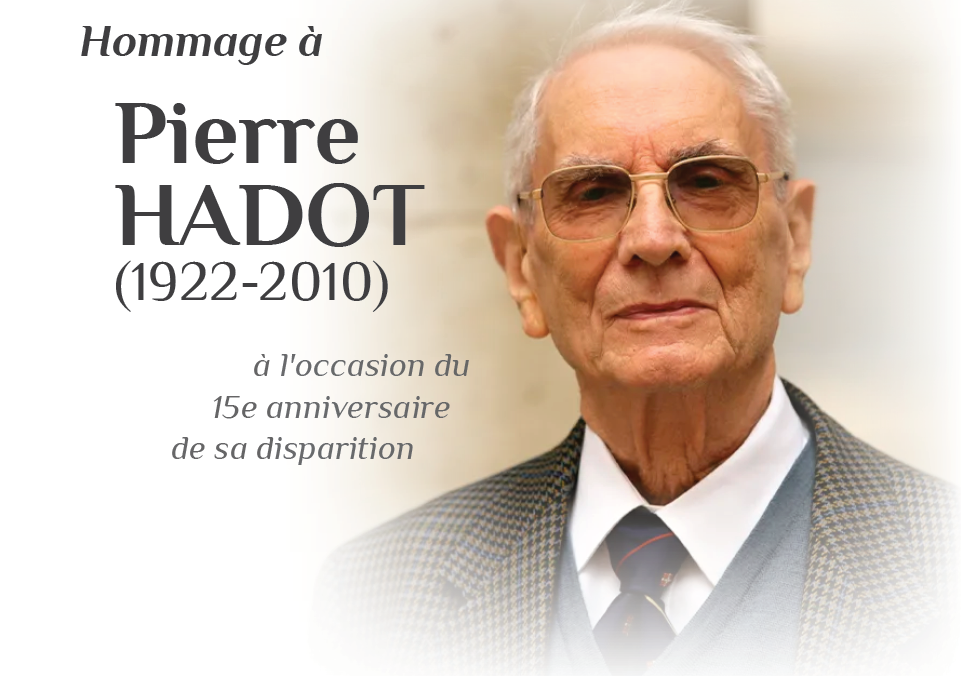 Le cercle des Amis de Pierre Hadot organise le samedi 11 octobre 2025 un hommage à la personne et à la pensée de Pierre Hadot, titulaire de la chaire Histoire de la pensée hellénistique et romaine du Collège de France de 1982 à 1990.