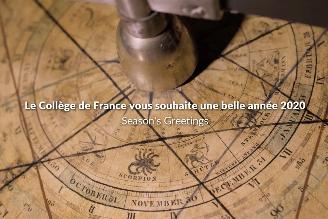 Publié le 18 décembre 2019 Collège de France Partager Facebook LinkedIn Bluesky Threads Copier le lien Flux RSS Actualités Actualité Le Collège de France vous souhaite une belle année 2020 ! Voeux Sauter le player vidéo Youtube Dernières actualités associées Toute l'actualité Actualité épinglée Programme Marguerite d’accueil de jeunes chercheurs internationaux Publié le 24 octobre 2025 Actualité épinglée Le Collège à la Bibliothèque – Thomas Lecuit : Le vivant dévoilé. Avec Blaise Pascal, Robert Hooke et Buffon Le 4 novembre 2025 Publié le 14 octobre 2025 Actualité épinglée Le Collège à la Bibliothèque – Timothy Gowers : De l’abstraction mathématique. Avec Nicole Oresme et Nicolas Chuquet Le 18 novembre 2025 Publié le 14 octobre 2025 Actualité épinglée Le Collège à la Bibliothèque – Emmanuelle Porcher : Pollinisation, un équilibre en péril. Avec Réaumur, l’abbé Pluche et Fabre Le 2 décembre 2025 Publié le 14 octobre 2025 Actualité épinglée Le Collège à la Bibliothèque – Alessandro Morbidelli : Entretien sur la pluralité des mondes. Avec Bernard de Fontenelle et Camille Flammarion Le 16 décembre 2025 Publié le 14 octobre 2025 Actualité épinglée Les représentations artistiques de la physique quantique Éclairages Publié le 13 octobre 2025 Actualité épinglée Musique ! La Philharmonie au Collège de France Publié le 26 septembre 2025 Actualité épinglée Colloque de rentrée 2025 : « Formes de l’intelligence » Les 16 et 17 octobre 2025 Publié le 26 septembre 2025