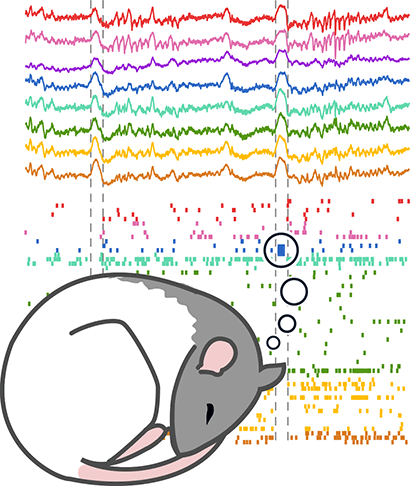 Pendant le sommeil, l’hippocampe se réactive spontanément en générant une activité semblable à celle de l’éveil. Il transmet alors des informations au cortex qui réagit en conséquence. Cet échange est souvent suivi par une période de silence appelée « onde delta » puis d’une activité rythmique appelée « fuseau de sommeil ». C’est à ce moment que les circuits corticaux se réorganisent pour former des souvenirs stables. Cependant, le rôle des ondes delta dans la formation de nouveaux souvenirs reste une énigme : pourquoi une période de silence vient-elle interrompre l’enchaînement entre les échanges d’information hippocampo-corticaux et la réorganisation fonctionnelle du cortex ?