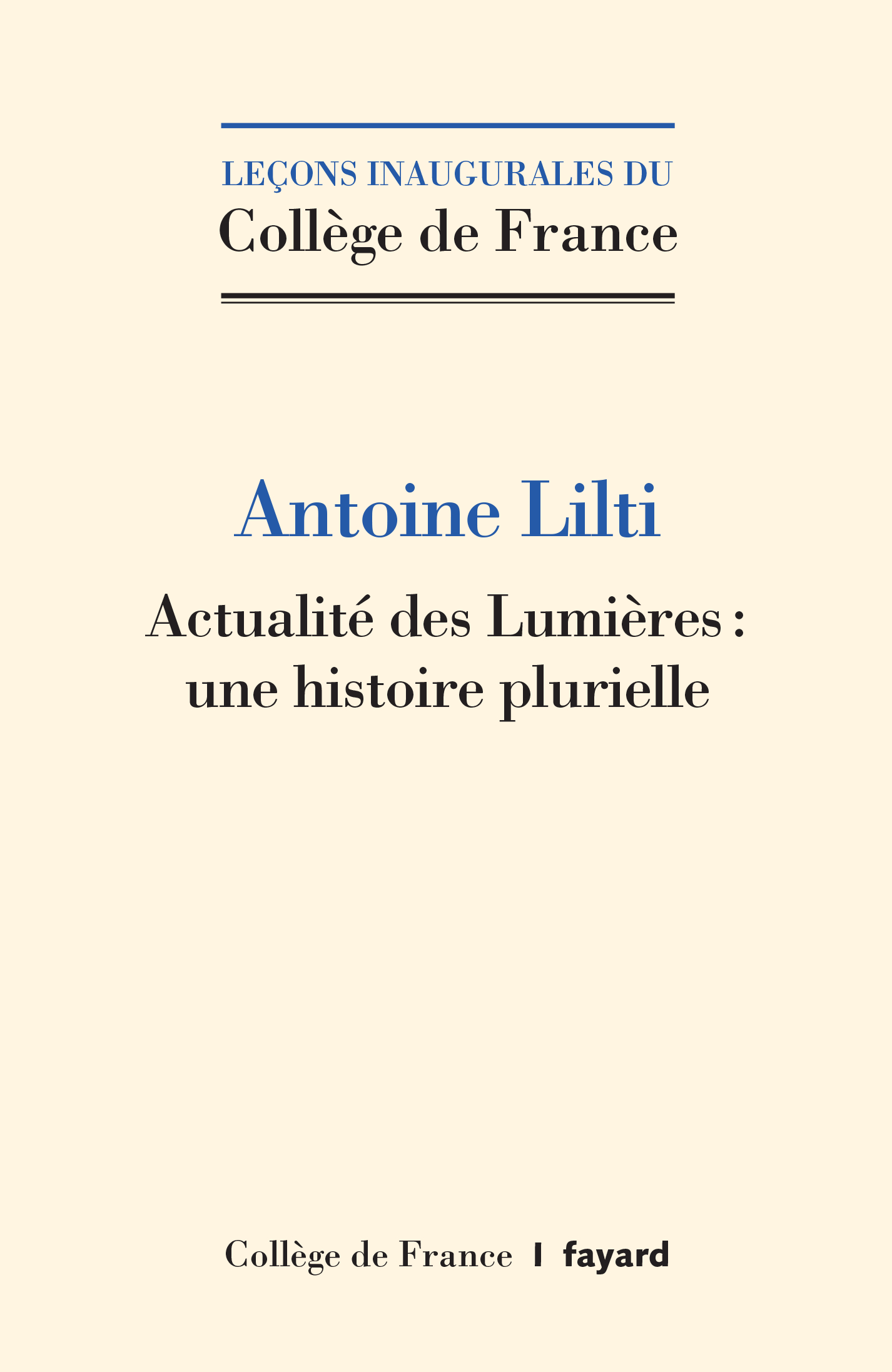 Lilti A., Actualité des Lumières : une histoire plurielle, Paris, Collège de France/Fayard, coll. « Leçons inaugurales », no 316, juin 2023, 80 p.