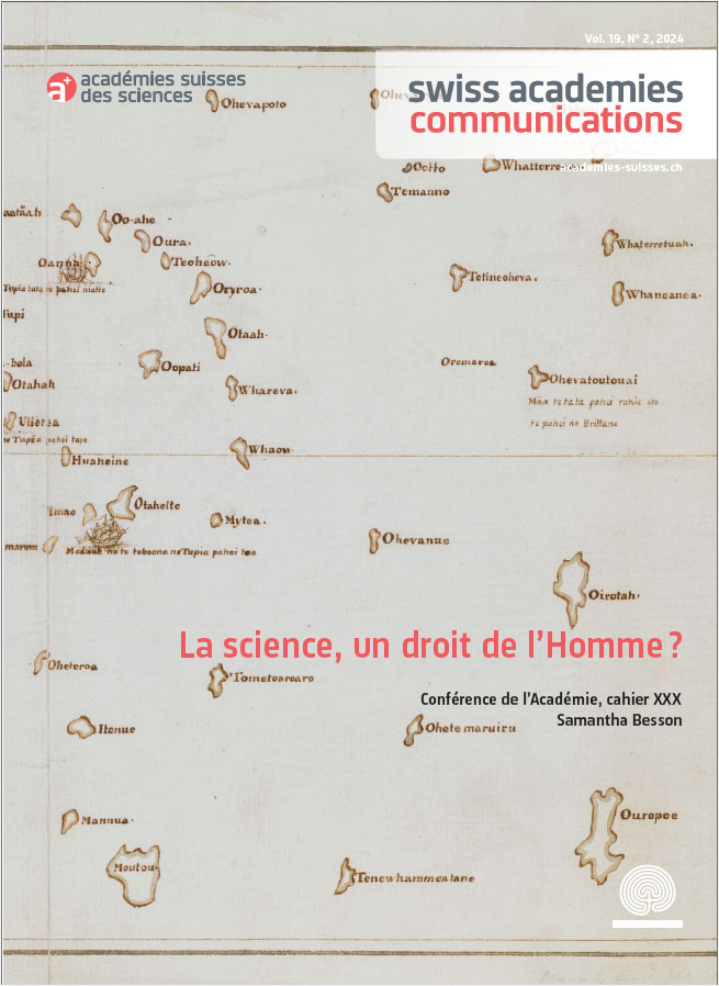 Besson S., La science, un droit de l'Homme ?, éd. par l’ASSH, Conférence de l’Académie, cahier XXX, série « Swiss Academies Communications », vol. 19, numéro 2, 2024.