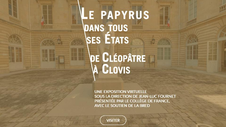 À l’automne 2021, l’exposition « Le papyrus dans tous ses États, de Cléopâtre à Clovis », dirigée par le Pr Jean-Luc Fournet et organisée au Collège de France avec le soutien de la BRED et en partenariat avec les magazines L’Histoire et Télérama, a rassemblé dans le grand foyer du Collège de France une soixantaine de pièces datant de l’Égypte antique jusqu’au début du Moyen Âge, présentant l’histoire de ce qui pendant plusieurs millénaires constitua dans tout le pourtour méditerranéen le support essentiel de l’écriture.